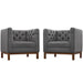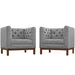 Add vivacity to your décor with the Panache Collection. Designed to express elegance and comfort, Panache comes outfitted with deeply tufted buttons and plush cushions for a timeless charm. Constructed with solid wood legs, fine fabric upholstering, and a reinvented mid-century style design with a dash of vintage charm, enhance your living room, lounge or meeting area with the Panache Collection.
