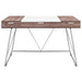 Witness the continual infusion of dual-toned elements with the Panel desk. Made from Melamine covered fiberboard, Panel artfully flanks a solid white center with natural wood-grain toned ends. There are three easy pull-out storage drawers across the length of Panel that make sure all your pads, pens, and other supplies are close at hand. The metal tube base adds a pleasant finish to this contemporary piece perfect for work or home.