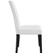 Wrap up moments of quality seating with the Parcel dining chair. Finely upholstered in faux leather with a nail-head trim, dense foam padding, and solid legs, Parcel delivers a concise offering that enhances the dining experience in a subtle and unassuming way. Assembly Required.