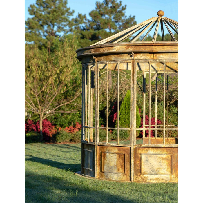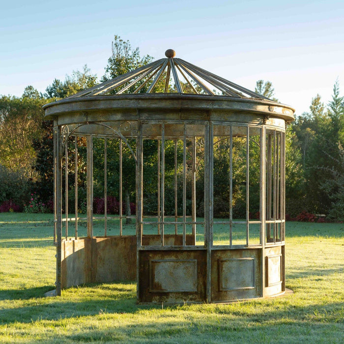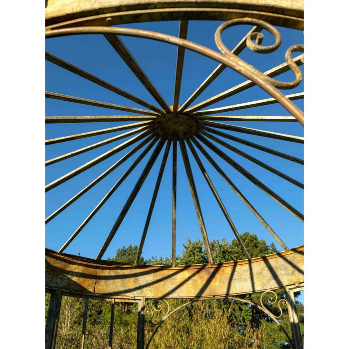 Inspired by a salvaged gazebo from an old estate, this masterfully forged aged metal gazebo is a stunning addition to any yard or garden.