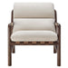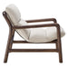 Elevate your living space with the Paxton Wood Chair, blending a classic sling chair design with butterfly chair aesthetics. This accent chair's striking ash wood frame exhibits the natural beauty of wood grain, complemented by durable vegan leather straps for the sling seat. The seat cushion, upholstered in soft fabric and generously padded, offers ultimate comfort, making it an ideal reading chair. Whether placed in a cozy corner of your living room or as a reading chair for the bedroom, the versatility of this mid century modern lounge chair shines through. It's thoughtfully designed with non-marking foot pads to protect your flooring, ensuring that this faux leather armchair is not only stylish but practical for any seating area. Paxton comes fully assembled. Weight Capacity: 331 lbs.