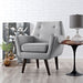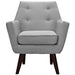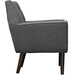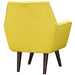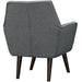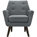 Engage your sensibilities with the organically shaped Posit armchair. Posit is gracefully positioned on solid espresso stained dowel legs designed according to mid-century design practices. Whether settling in with coffee and brunch, or entering a spirited discussion with friends, Posit’s polyester upholstery, two rows of finely stitched back seat buttons, and organic form ensure an eye-catching appeal at every turn. Bring depth and modernity to your contemporary living room or lounge area with the Posit armchair.