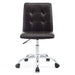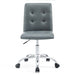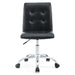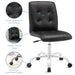 Etiquette presides over the properly styled Prim armless office chair. Modern to the touch, luxurious to the eye, Prim features deep tufted buttons, skilled faux leather upholstery, and elegant trim for added finesse. Prim is height adjustable, swivels to a 360 spin, and comes outfitted with a polished chrome steel base with five dual-wheel nylon casters. Perfect for conference rooms, workstations, or desks, Prim is a modern piece that works admirably to further the finer civilities of life.