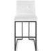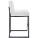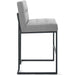 Maximize your dining room decor with Privy. A glam deco bar stool, Privy features soft and durable fabric upholstery for a streamlined modern look. This stylish bar stool rests atop a sleek matte black stainless steel geometric base with a footrest that will elevate your bar and dining experience. No assembly required. Bar Stool Weight Capacity: 331 lbs.