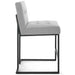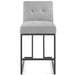 Maximize your dining room decor with Privy. A glam deco kitchen counter stool, Privy features soft and durable fabric upholstery for a streamlined modern look. This counter height stool rests atop a sleek matte black stainless steel geometric base with a footrest that will elevate your dining experience. No assembly required. Counter Stool Weight Capacity: 331 lbs.