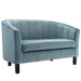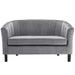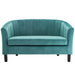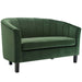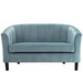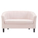 A fresh outlook on a familiar classic, Prospect Performance Velvet Loveseat brings intrinsic luxury to your living space. This barrel back loveseat comes upholstered in stain-resistant performance velvet polyester, and boasts chic channel tufting, updating the Chesterfield-inspired profile with retro modern design elements. The densely padded removable seat and backrest grant approachable comfort that beckons guests to sit and stay a while. Maximum Weight Capacity: 331 lbs.