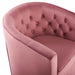 A fresh outlook on a familiar classic, the Prospect Performance Velvet Swivel Armchair brings intrinsic luxury to your living space. This barrel back armchair comes upholstered in stain-resistant performance velvet fabric and boasts tufted accents, updating the rounded profile with retro modern design elements. The densely padded removable seat and backrest grant approachable comfort that beckons guests to sit and stay a while. Solidly constructed from wood and plywood, this accent chair rests securely on a sturdy swivel base. Assembly Required. Maximum Weight Capacity: 300 lbs.