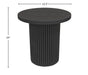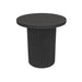 Complete your space with the Reba Round End Table, a compact yet striking companion to the Reba Coffee Table. With its sculptural fluted base and clean round top, this end table adds quiet sophistication and practical surface space to your seating area. Handcrafted from solid Mindi and oak veneer, the Reba brings organic texture and contemporary form together in perfect harmony. Available in a rich black or natural white wash finish, itβs the ideal accent for modern, transitional, or minimalist homes.
