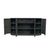 Maximize storage and style with the Reba Sideboard. Measuring 68"W x 18"D x 36"H, this sideboard features ribbed door fronts that add texture and dimension to your dining area. Soft-close drawers inside ensure smooth operation, while adjustable shelves provide customizable storage options. Available in black or white wash finishes, this sideboard is a must-have addition to your dining room decor.