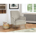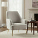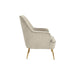 Curl up with a good book in the Rebecca leisure chair that makes for a chic accent to your modern decor. Made with smooth, velvety fabric of a soft gray hue, this armchair is crafted with a tall back that slopes into wide arms to encircle you in its plush coziness. Slender yet sturdy gold legs provide a pop of on-trend glamour and the matching footrest sold separately just adds that extra layer of comfy. Showcase this eye-catching side chair in your living room, bedroom, or even in an entryway to provide your guest the most comfortable seating.