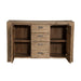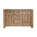 The Seashore Sideboard matches the dining group or can be used in any rustic setting. Brass hardware compliments the Sandblasted Antique Natural finish on solid Acacia wood. Handcrafted in Indonesia, this fully assembled piece provides ample storage with four drawers and cabinets with adjustable shelves.