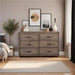 Old and new design elements have inspired this group, creating a clean-lined metropolitan aesthetic. The Sydney collection features Plantation Mahogany wood solids and Okoume veneers for an upscale and elegant look. 6 drawers provide storage. The Weathered Gray finish has been lightly brushed to coordinate beautifully with the hardware. The result is a comfortable, livable bedroom environment for you to relax in and enjoy.