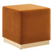 Delight in the elegance of the Tilden 17" Square Upholstered Ottoman, an ideal accent ottoman for modern homes, offices, or cozy apartments. Upholstered in stain-resistant performance velvet with French piping trim, this small ottoman footstool offers both luxury and durability. Its tailored silhouette complements contemporary decor, while the dense foam padding provides versatile use as a comfortable ottoman seat, footrest, small side table, or a stylish vanity seat. Resting on a rubberwood plinth base with non-marking glides, this ottoman stool protects your floors from damage. The Tilden performance velvet ottomanβs compact size makes it a perfect small ottoman for tight spaces. Arriving fully assembled, this modern sitting stool combines chic style and functionality. Weight Capacity: 506 lbs.