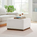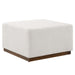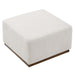 Delight in the elegance of the Tilden 28" Square Upholstered Ottoman, an ideal accent ottoman for modern homes, offices, or cozy apartments. Upholstered in boucle fabric with a nubby texture and French piping trim, this large ottoman footstool offers both luxury and durability. Its tailored silhouette complements contemporary decor, while the dense foam padding provides versatile use as a comfortable ottoman seat, large footrest, or living room ottoman coffee table. Resting on a rubberwood plinth base with non-marking glides, this ottoman table protects your floors from damage. Arriving fully assembled, the Tilden fabric ottoman combines chic style and functionality. Weight Capacity: 506 lbs.