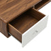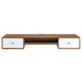 Harness the iconic energy of mid-century style in your home office with the Transmit Wall-Mount Office Desk. Abounding in retro modern design, this computer desk is complete with a pull-out keyboard tray, two full-extension drawers for ample storage space of all your office essentials, and a cable management hole to keep your workspace neat and organized. This durable office desk is built with a sturdy particleboard frame with a smooth walnut wood grain laminate and white lacquer drawer fronts with chrome metal hardware. Mounting directly to the wall, this office desk is an instant update to your workspace. Assembly required. Weight limit: 23 lbs.