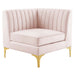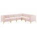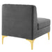 Elevate your living space with the visual appeal and linear detail of the Triumph Channel Tufted Performance Velvet 6-Piece Sectional Sofa. With interior channel tufting and luxe velvety texture, this sectional sofa abounds in retro modern style and glam deco charm. This couch is part of a sectional sofa collection that allows you to create a seating solution that works for your living room, bedroom, office space, entryway, or lounge area. This upholstered sectional sofa is covered in stain-resistant performance velvet and features dense foam padding and a sinuous spring support system for a premium seating experience. The velvet sofa sits on four gold metal legs with non-marking foot caps to protect your flooring. Weight Capacity for Each Sectional Sofa Piece: 440 lbs.