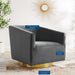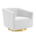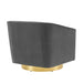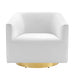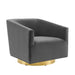 Acquire leisure time with artful ease. Featuring soft, stain-resistant performance velvet upholstery and dense foam padding, the Twist Accent Lounge Swivel Chair comes with an elegant barrel back design perfect for a luxurious seating experience. Resting on a brushed gold metal swivel base, this velvet swivel chair makes it easy to maneuver to your position of choice as you relax. Rotate around and enjoy the entirety of your surroundings with this comfortable accent chair perfect for your living room, entryway, bedroom, or lounge area. Chair Weight Capacity: 300 lbs.