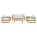 Refresh your outdoor décor with the Upland Teak Outdoor Collection. Boldly designed with eye-catching appeal, Upland is made of solid teak wood with all-weather white cushions and solidly build construction. The perfect choice for balconies, backyards, patios, gazebos, poolside or garden spaces, choose from matching armchair, loveseat, ottoman, side table, coffee table, and chaise lounge selections with this multi-purpose modern teak set. Known for its ability to withstand extreme weather conditions, teak is the wood selection of choice for long-lasting outdoor furnishings. Assembly required.