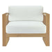 Refresh your outdoor décor with the Upland Teak Wood Outdoor Patio Furniture Collection. Boldly designed with eye-catching appeal, Upland Patio Arm Chair is made of solid teak wood and solidly build construction. The perfect choice for balconies, backyards, patios, gazebos, poolside or garden spaces, choose from matching arm chair, loveseat, sofa, ottoman, side table, coffee table, and chaise lounge selections with this multi-purpose modern teak set. Known for its ability to withstand extreme weather conditions, teak is the wood selection of choice for long-lasting outdoor furnishings. Assembly required. This installment of the Upland Teak Wood Outdoor Patio Furniture Series is a patio arm chair.