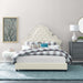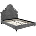 Make rich opulence the focal point of your master bedroom or guest suite with the Valentina Performance Velvet Tufted Nailhead Queen Platform Bed. A modern update on Victorian-era style, this upholstered queen bed frame featuring a padded queen headboard with ornate curves, diamond button tufting, and classic nailhead trim. Valentina comes upholstered in luxurious performance velvet, made with stain-resistant polyester fabric, and dense foam padding offering supportive comfort. Eliminating the need for a box spring, Valentina comes complete with a wood slat support system and reinforced center beam. Perfect for sitting up and relaxing in bed, introduce a lasting mattress foundation for latex, memory foam, innerspring, and hybrid mattresses with the Valentina Queen Platform Bed. Maximum Weight Capacity: 1322 lbs.