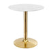 Gather family and friends for good food and conversation around the Verne Dining Table. Bringing modern influence and mid-century inspiration to your dining space, this pedestal table reflects an organic shape. Perfect for entertaining or everyday dining, this dining table rests on a polished gold metal pedestal base and features a 28" artificial marble tabletop with an easy-to-clean, scratch-resistant finish. Includes non-marking ring to protect flooring. Assembly required.