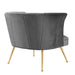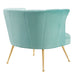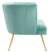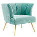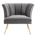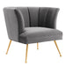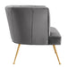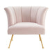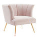 Transform your living room with the stunning retro glam of the Veronica Channel Tufted Performance Velvet Armchair. The channel tufted backrest offers a soft embrace and brims with mid-century modern style. Veronica is a whimsical accent chair with gold stainless steel legs artfully splayed to mirror the gentle outward curves in the upholstered chair. Settle into your bedroom or lounge area and enjoy comfort from dense foam padding and a webbed support system. This reading armchair is outfitted with stain-resistant performance velvet and non-marking foot glides to protect your floor. Weight Capacity: 331 lbs.