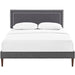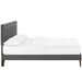 Accelerate your bedroom decor with the Virginia Platform Bed. Made with a solid wood frame upholstered in polyester fabric, Virginia features tapered wood legs, plastic foot glides, stylish headboard, and ten sturdy wood slats with a centered supporting bar and two support legs for enhanced stability. Due to the wooden slat support system, the use of a box spring is unnecessary. Virginia supports memory foam mattresses such as our Aveline series. Perfect for mid-century modern, minimalist and contemporary bedrooms. Mattress not included. Assembly Required.