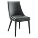 Energize your décor with the sleek Viscount Dining Chair. Designed with a minimalist chic form and progressive feel, this side chair comes densely padded in foam, finely upholstered in vegan leather, and supported by tapered wood legs coated black. From the sheer force of the design to the exceptional versatility of the uses, Viscount is perfect for modern contemporary décors seeking a bold chair that makes a statement.
