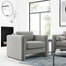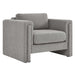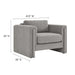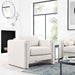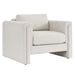Indulge in the epitome of modern luxury and sophistication with the Visible Boucle Accent Armchair. Crafted with a sturdy wood and plywood frame, this armchair exudes modern elegance with its sleek lines and tailored silhouette. The adjustable non-marking foot pads protect your flooring while providing sturdy stability. Sink into cozy comfort with the dense foam padding and durable boucle fabric upholstery with a charming nubby texture. The cushions and cushion covers are removable to make cleaning a breeze. Enjoy unmatched support with the pocket coil springs that offer a premium seating experience. Assembly is required with easy to follow assembly instructions. Weight Capacity: 330 lbs.