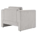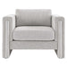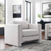 Indulge in the epitome of modern luxury and sophistication with the Visible Accent Armchair. Crafted with a sturdy wood and plywood frame, this armchair exudes modern elegance with its sleek lines and tailored silhouette. The adjustable non-marking foot pads protect your flooring while providing sturdy stability. Sink into cozy comfort with the dense foam padding, individualized pocket coil support, and stain-resistant heathered weave polyester fabric upholstery. The cushions and cushion covers are removable. Enjoy unmatched support with the pocket coil springs that offer a premium seating experience. Assembly is required with easy to follow assembly instructions. Weight Capacity: 330 lbs.