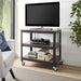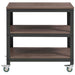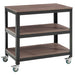 Mix rustic country style with modern industrial vibes. Made with a gray powder coated steel frame for support, the Vivify Tiered Serving Stand is topped with walnut grained veneer and rests on four 360 degree swivel casters with brake locking for added versatility. Excellent as a serving stand, Vivify also smoothly functions as an indoor plant stand or general use kitchen, entryway or living room accent table.