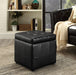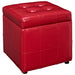 The square shape evokes feelings of security and reliance in this compact accent ottoman you can count on. The Volt Button Tufted Faux Leather Upholstered Storage Ottoman stands ready as a footrest, while the lined storage compartment works great for both regular uses, and for a swift run-through before last-minute visitors. Dense foam padding and a solidly constructed wood frame are covered by soft and durable faux leather upholstery, while button tufting details give Volt a contrasting visual depth designed to please. Volt Faux Leather Upholstered Storage Ottoman features a boxy design that creates a dashing addition to your agile décor, making it perfect for your living room, lounge room, bedroom, or other seating areas.