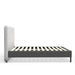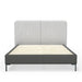 This modern low-profile bed is the epitome of style and comfort, featuring a split headboard design that adds a touch of elegance to any bedroom. The light grey linen texture headboard, grey faux leather footboard and side rails, and black finished metal legs create a beautiful and sophisticated color scheme that will complement any decor. Designed with your comfort in mind, this platform bed eliminates the need for a box spring, providing a supportive and comfortable sleeping surface. And with its sturdy metal legs, this bed will provide you with many restful nights of blissful sleep. Upgrade your bedroom today and experience the ultimate in comfort and luxury with our Walden bed. Order now and discover the perfect bed for your perfect night's sleep.