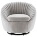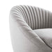 Spin around and take in your surroundings with the Whirr Tufted Fabric Swivel Chair. Perfect for the living room, entryway, bedroom, office, or other seating area, this accent chair features vertical channel tufting, soft tactiles, and a beautifully curved silhouette. Covered in soft polyester fabric, this upholstered chair is a premium seating experience complete with dense foam padding and a spring support system. This swivel chair rests on a black metal swivel base so you can effortlessly maneuver to your position of choice. Weight Capacity: 300 lbs.