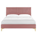 Yasmine Channel Tufted Performance Velvet Platform Bed With Gold Metal Legs