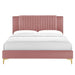Zahra Channel Tufted Performance Velvet Platform Bed With Gold Metal Legs
