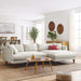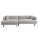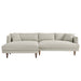 Dive deep into comfort and conversations with the Zoya Upholstered Down-Filled Sectional Sofa. The perfect addition to modern living rooms, family rooms, or game rooms, Zoya's two-piece sectional design, featuring a left-arm chaise, invites you into an immersive lounging experience, with a low, comfortable profile and spacious deep seating. Upholstered in polyester fabric with a down blend and dense foam filling, this living room sofa provides a soft, cloud-like sensation that retains its shape. Accompanied by back cushions and two square throw pillows, this sectional delivers a lounging experience optimized for comfort. The convenience of removable and washable cushions makes maintenance a breeze. Underneath a lavish exterior, Zoya integrates pocket springs, which offer added support, all while perched on sleek tapered rubberwood legs and set on a solid wood frame. Whether you're hosting a movie night or reading your favorite book, the Zoya Fabric Sectional Sofa is your ticket to a luxurious lounge. Comes equipped with non-marking foot caps. Assembly required. Each piece weight capacity: 600 lbs.